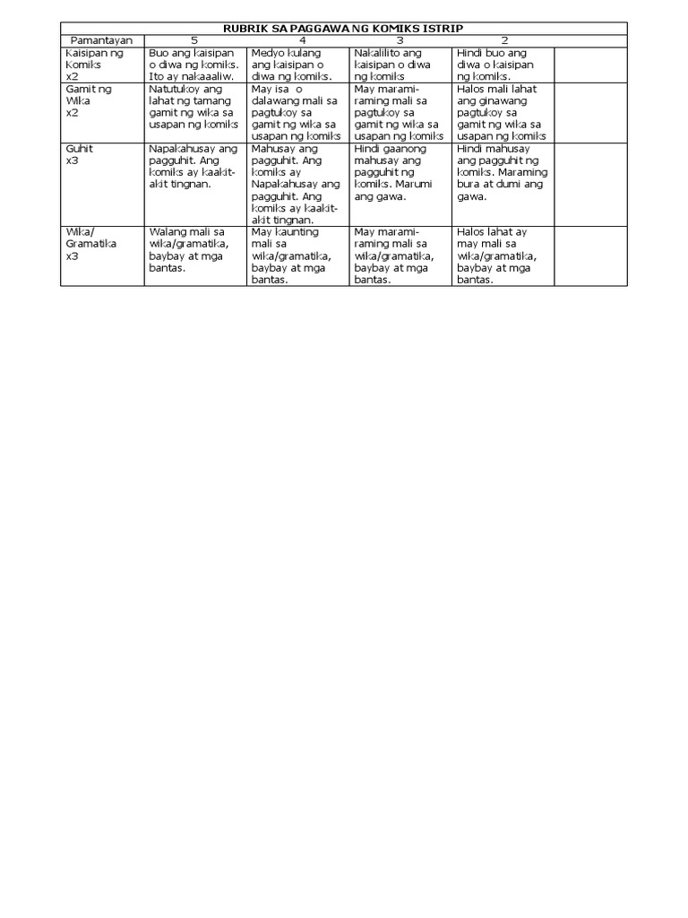 Rubric Maikling Kwento Binigyan Ng Tuon 5 Puntos Natatangi 3 4 Puntos Katamtamang Kagalingan Paksangdiwa Makabuluhan Naging Parang Bago Dahil Sa Course Hero