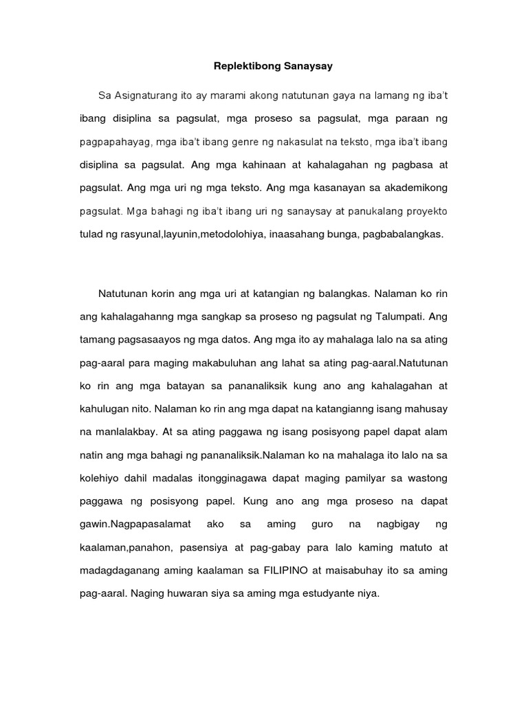 Panitikan sa Kasalukuyang Panahon. 15072017 Ang repleksibong sanaysay ay kasing halaga ng ibang uri ng sanaysay. Edukasyon na nagsilbing gabay natin sa ating buhay.