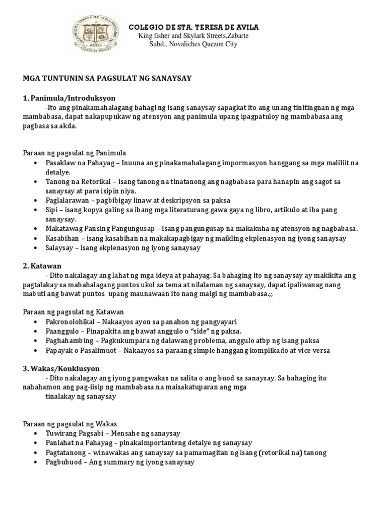 Mga Tuntunin Sa Pagsulat Ng Sanaysay