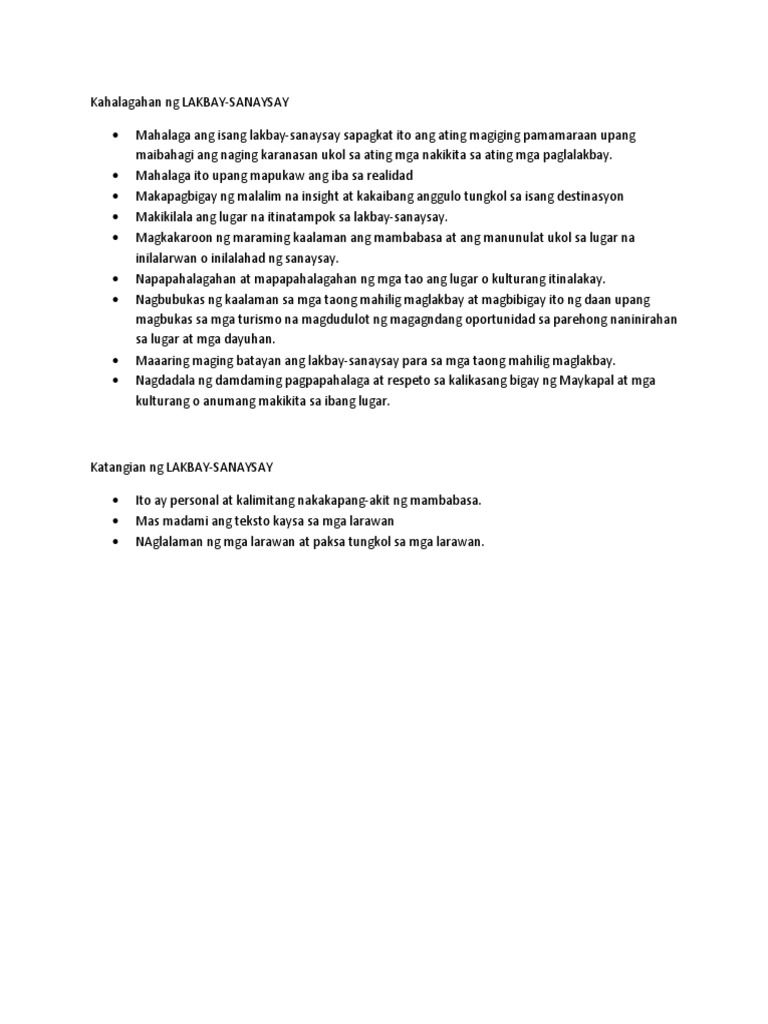 Kahalagahan At Katangian Ng Lakbay Sanaysay