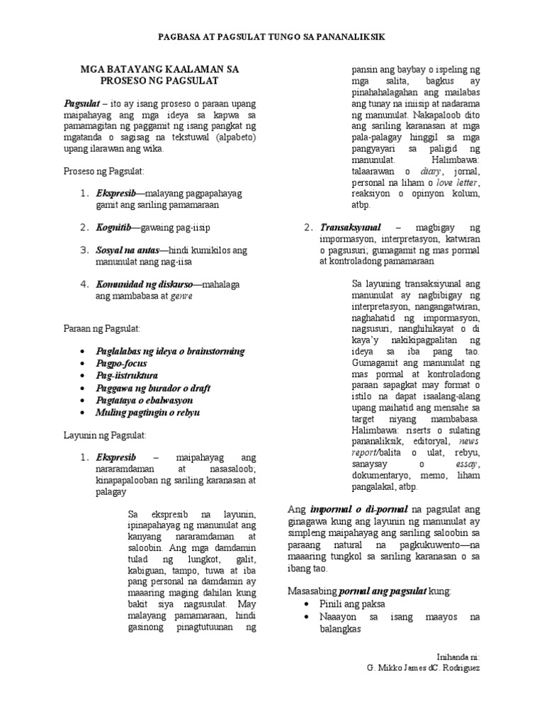 Mga Batayang Kaalaman Sa Proseso Ng Pagsulat