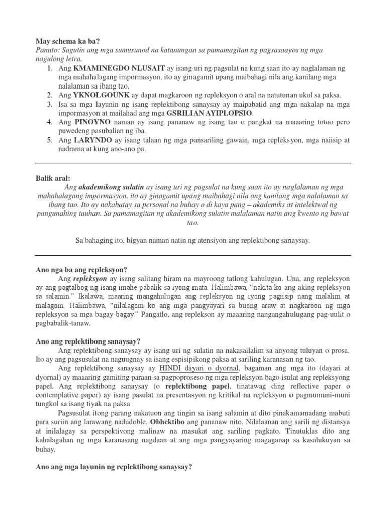 Inaasahang hindi na magpapaliguy-ligoy pa. Pagsulat ng Repleksyon Panuto. Maaaring pagnilayan ang mga sumusunod na tanong Ano ang iyong natutuhan.
