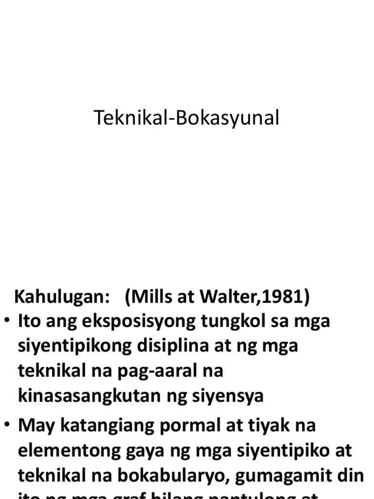 Teknikal na Pagsulat isang uri ng tekstong ekspositori na nagbibigay ng impormasyon para sa komersyal o teknikal na layunin. 24062018 ANO ANG MGA KATANGIAN NG TEKNIKAL-BOKASYONAL NA SULATIN. Saklaw nito ang pagsulat ng balita editoryal kolum lathalain at iba pang akdang mababasa sa mga pahayagan at magazin.